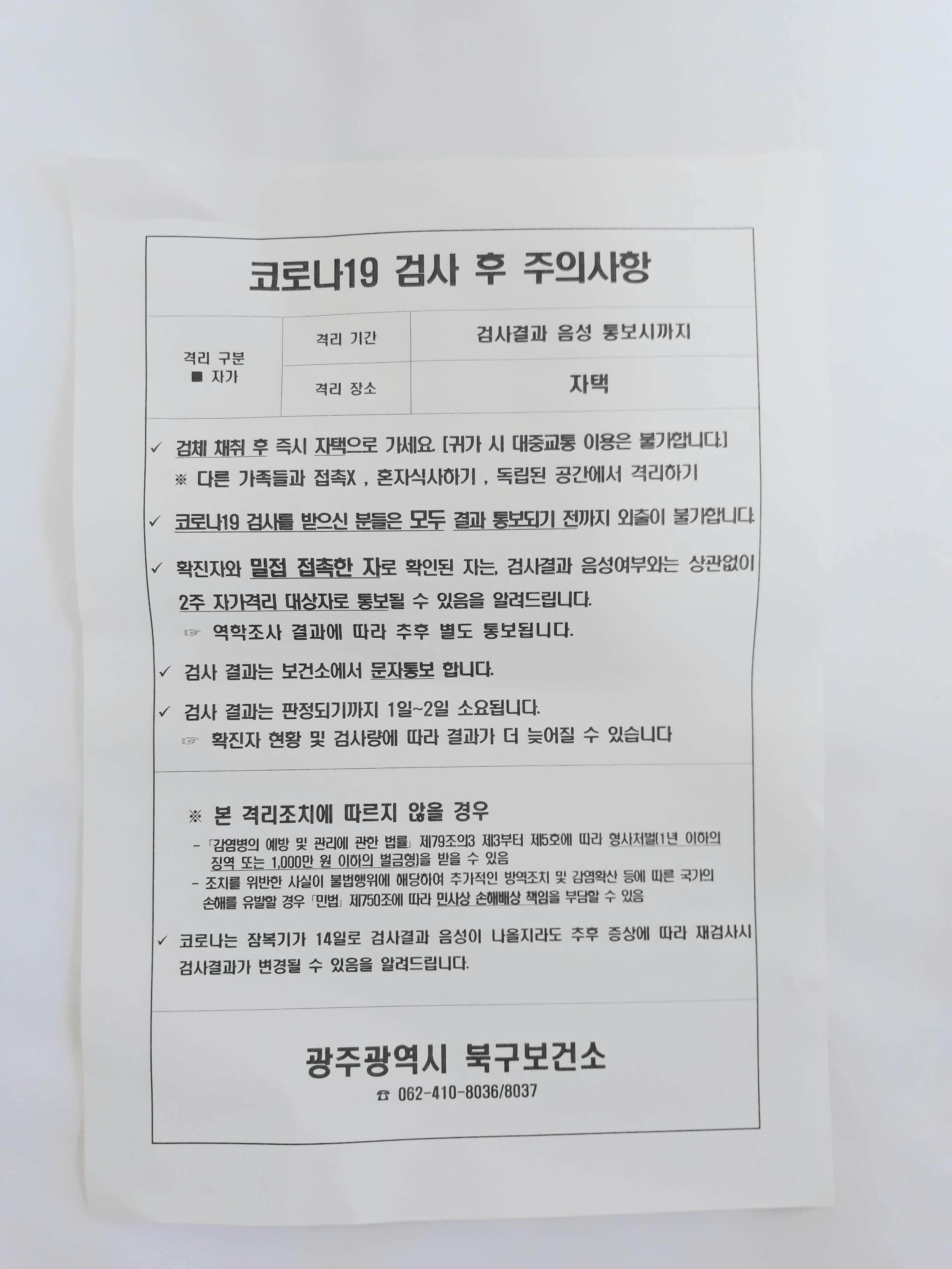 코로나 검사 후에 대중교통 이용하면 안 되고 바로 집으로 가야 한다고 해요.