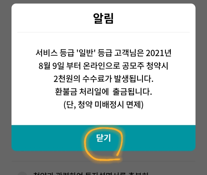 청약 수수료 : 온라인 2000원(일반등급). 후불(환불금 처리 일에 출금) 단, 청약 미배정시 면제