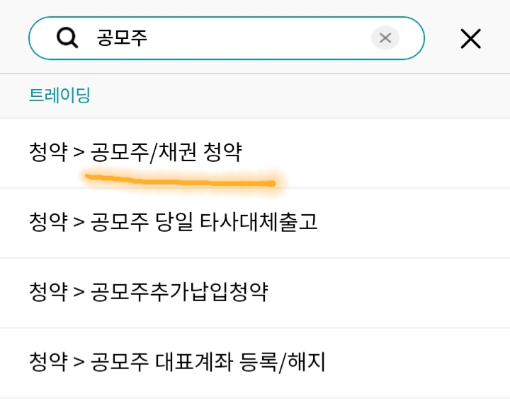상단에 검색창에 공모주 입력 후 검색 버튼 눌러주세요.