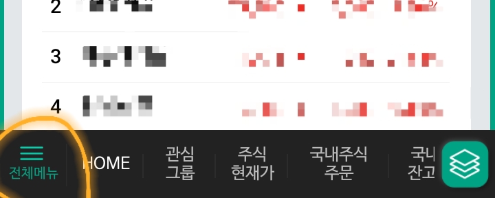 지오엘리먼트 증거금 표 확인 후 원하는 금액을 입금해 주세요. 모바일 증권나무 앱 접속 후 화면 좌측 하단에 보이는 전체 메뉴를 눌러주세요.