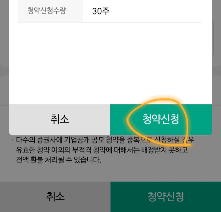 30주 신청하려고 15만 원 입금했더니 청약 가능금액 150000원이라고 보이네요.