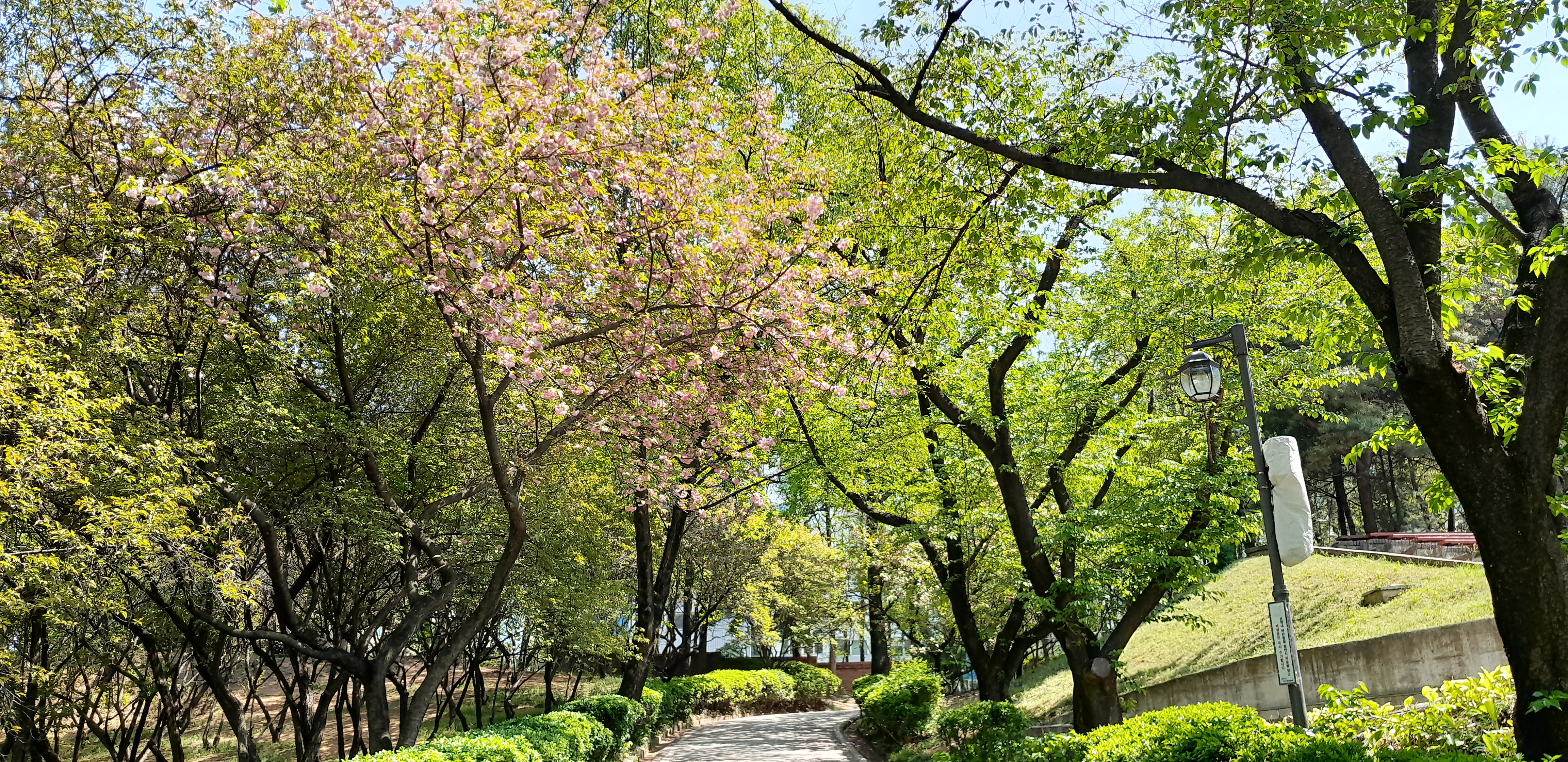 중외공원에 오랜만에 갔더니 겹벚꽃은 지기 시작하네요. 나뭇잎이 무성한 게 초여름 느낌이에요.