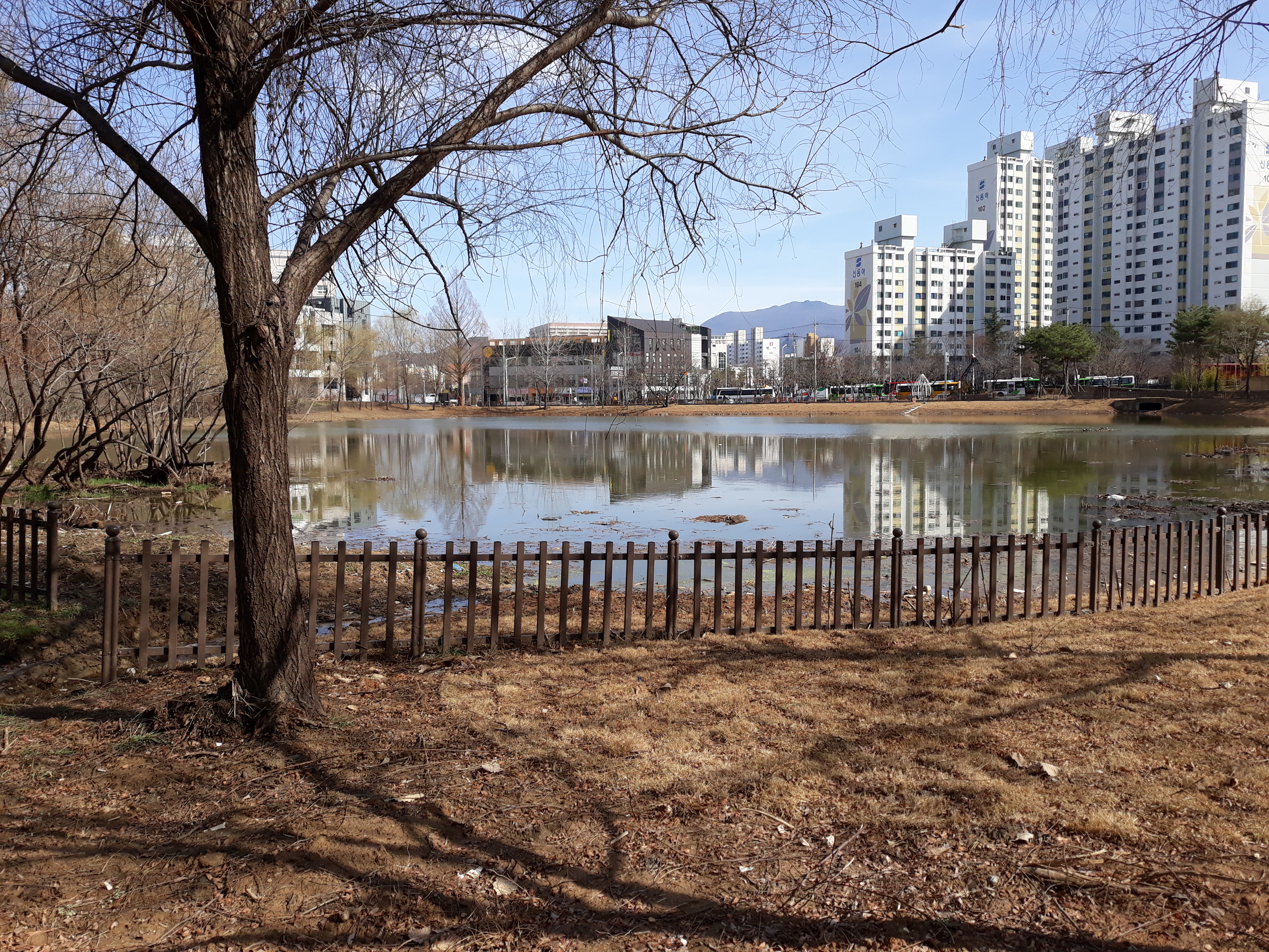 광주 민속박물관에서 계단으로 내려가면 생태공원이 있어요. 요즘 주변경관이 바뀌었답니다. 갈대, 풀 없으니 시야가 시원해졌어요.