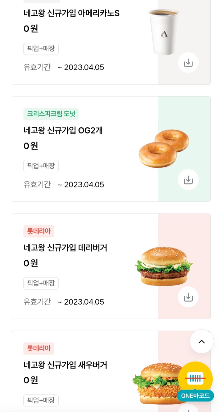 롯데리아 버거도 할인하고, 롯데잇츠 신규가입 하면 데리버거, 새우버거, 엔제리너스 아메리카노 커피(S), 크리스피크림 도넛 무료쿠폰 주네요. 데리버거, 새우버거 무료쿠폰으로 교환하려고 합니다.