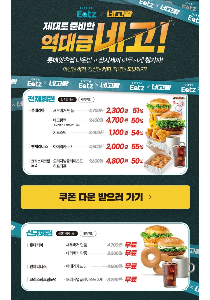 - 제품 무료쿠폰은 롯데잇츠앱 신규가입 회원에 한해 제공됩니다.