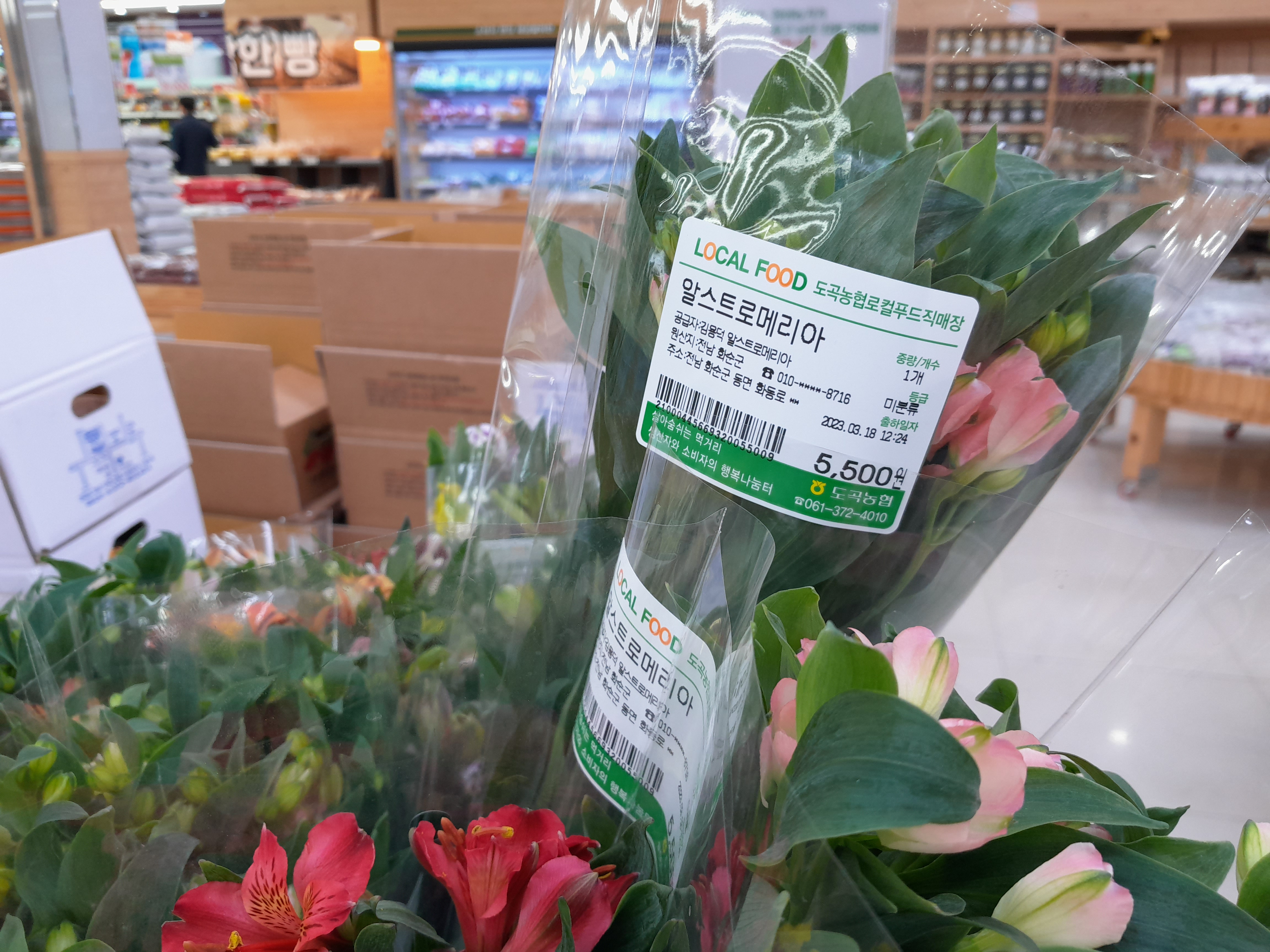 아래는 도곡 하나로마트에서 파는 꽃다발 가격을 찍은 사진입니다.