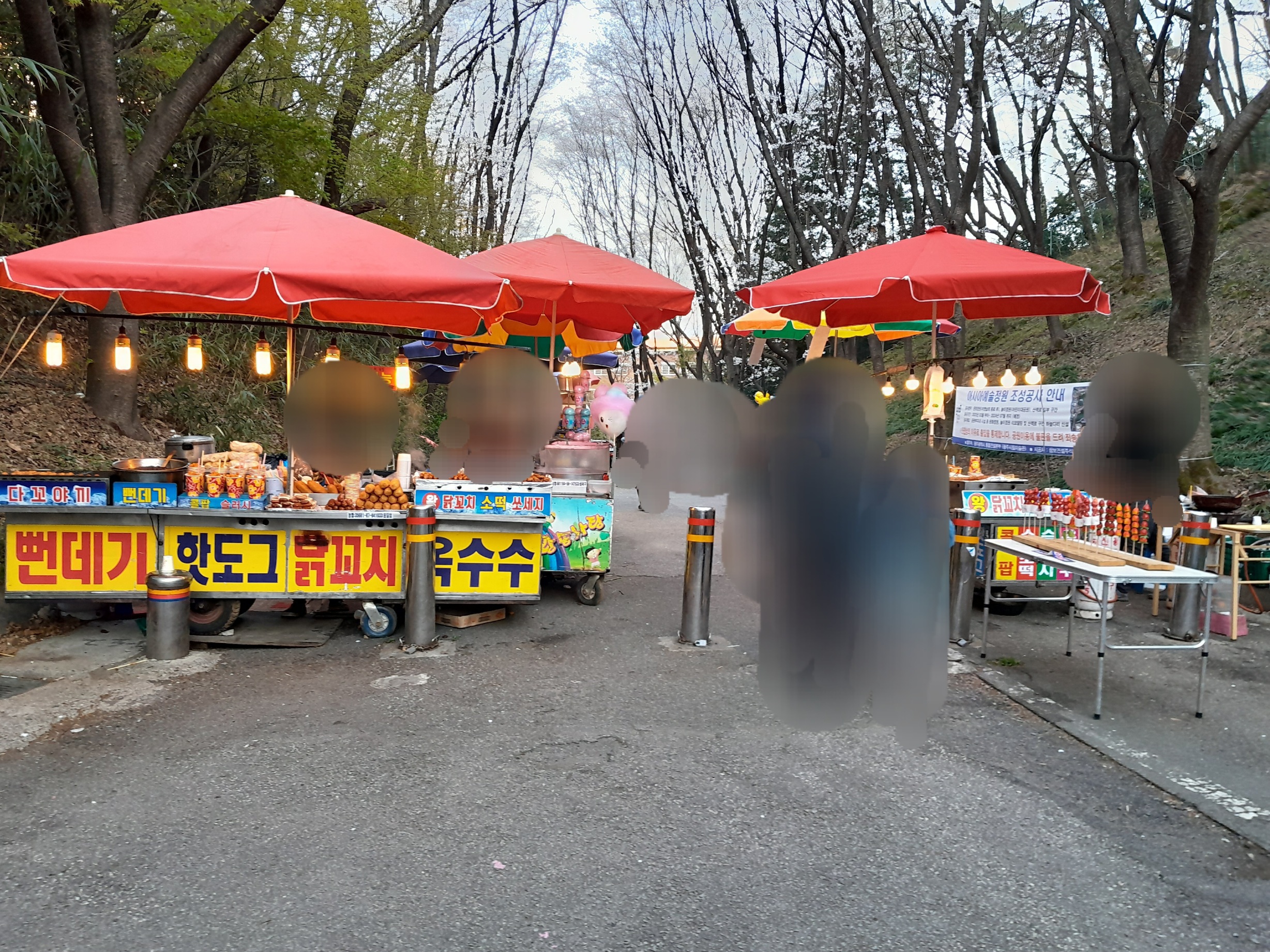벚꽃 만개시기라서 그런지 평일인데도 먹거리 많이 팔더라고요.
