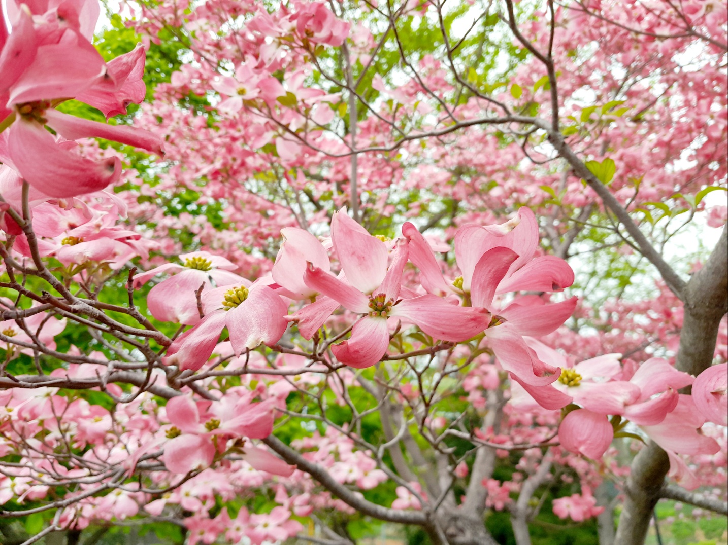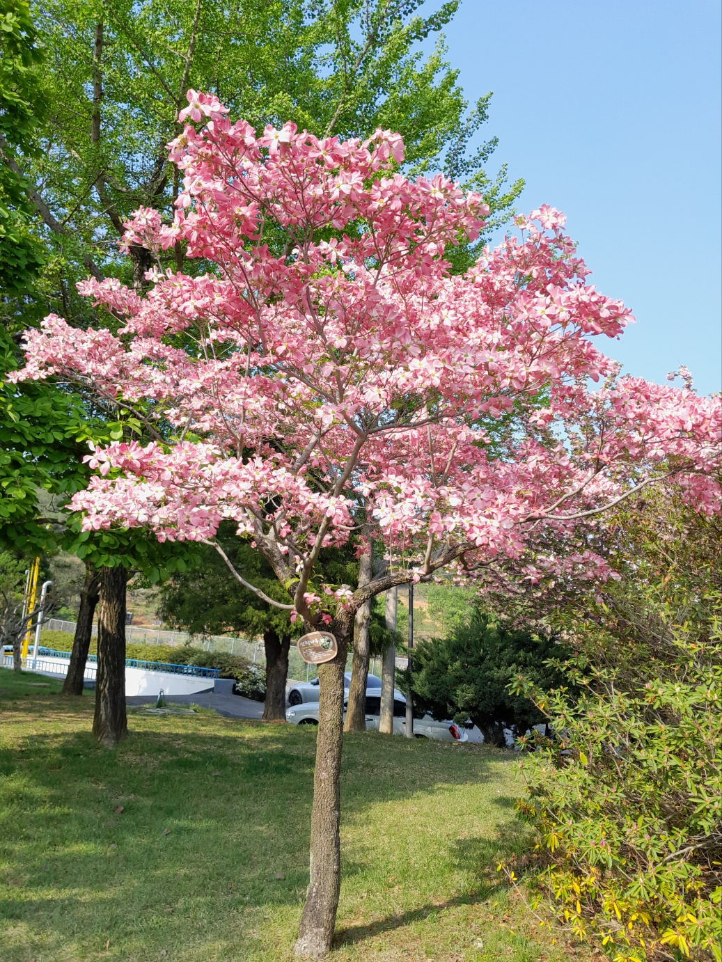 산딸나무 꽃이 붉은색도 있네요. 광주 시립미술관 뒤편에는 흰색 산딸나무 꽃이 많이 피는데 붉은색 꽃은 처음 봐서 신기했어요.