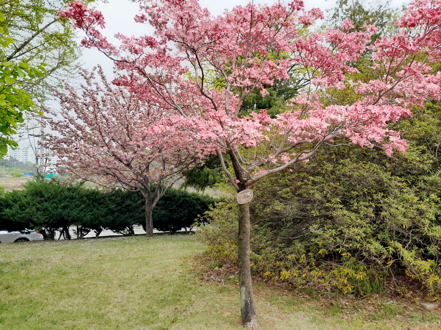 산딸나무 뒤에 겹벚꽃도 있어요. 국립박물관에 있는 겹벚꽃은 살짝 늦게 피는 같네요.