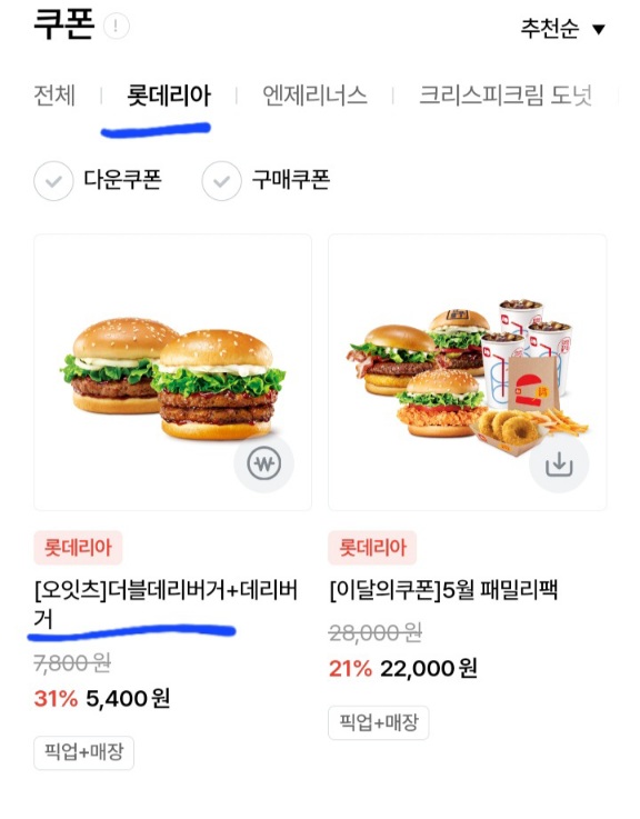 쿠폰 구매 후 사용 시 '더블데리버거+데리버거'로 교환 가능