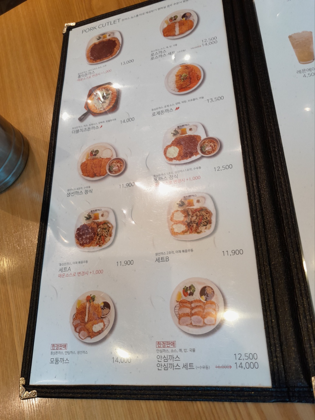 왕돈까스 가격은 13000원입니다. 매운 소스로 변경 시 1000원 추가네요.