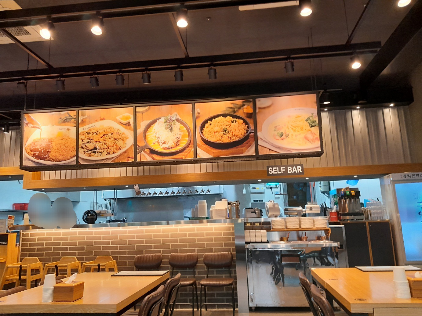 피클, 단무지는 셀프입니다. self bar라고 쓰여있는 곳에 있어요.