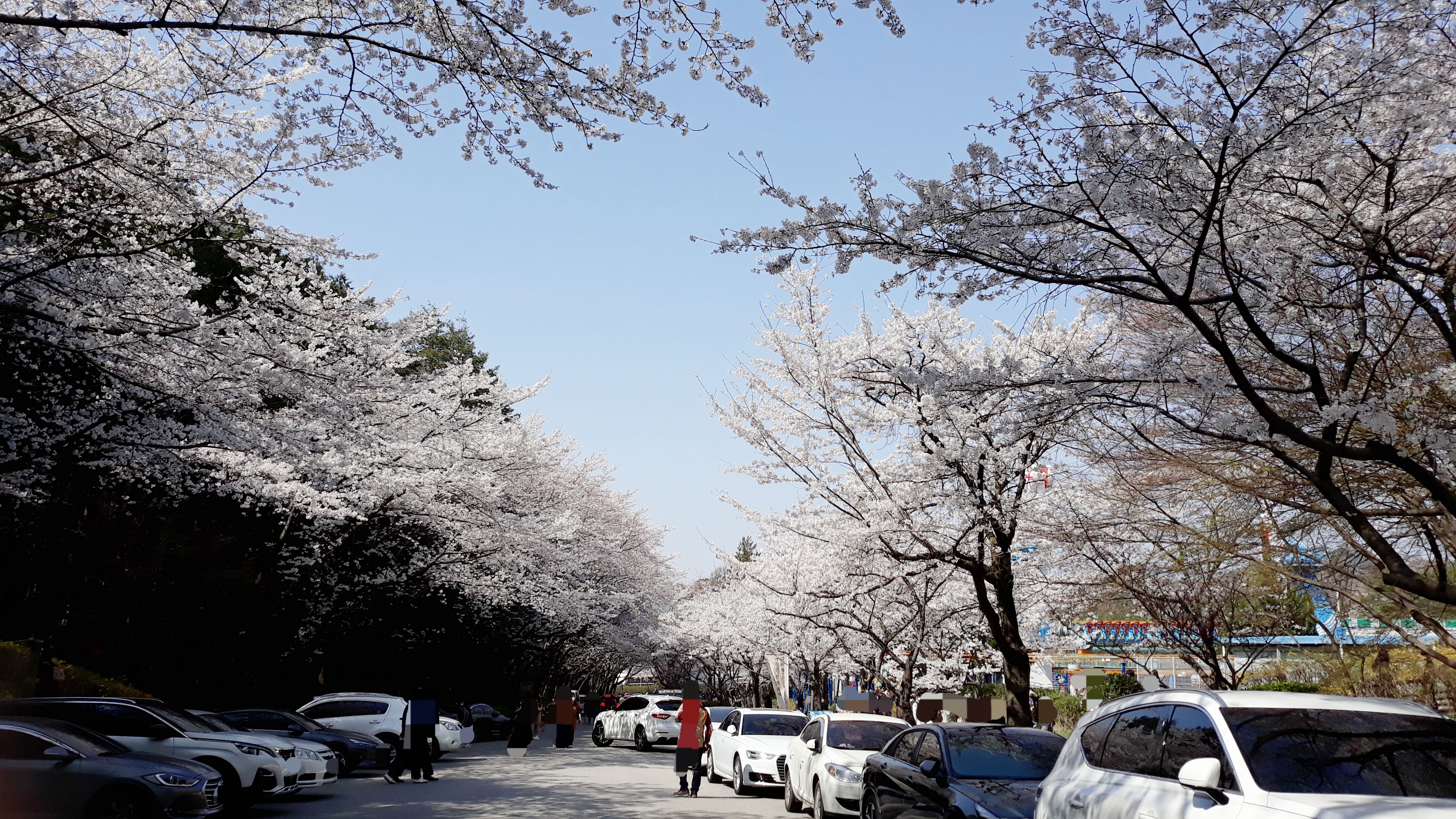놀이동산에서 쭉 걸어들어가면 금호고등학교가 나옵니다. 여기도 벚꽃나무 있어요. 학교가 있어서 양쪽으로 벚꽃나무가 있지 않아 많이 이쁘진 않지만 한적하니 걷기에 좋아요. 벤치도 있어서 운동하다 쉬다 가는 분도 많고요. 평소에는 이렇게 공원에 사람이 많지 않은데 활력 있어서 좋네요. 내일 광주 중외공원 벚꽃 보러 가세요. ㅎ