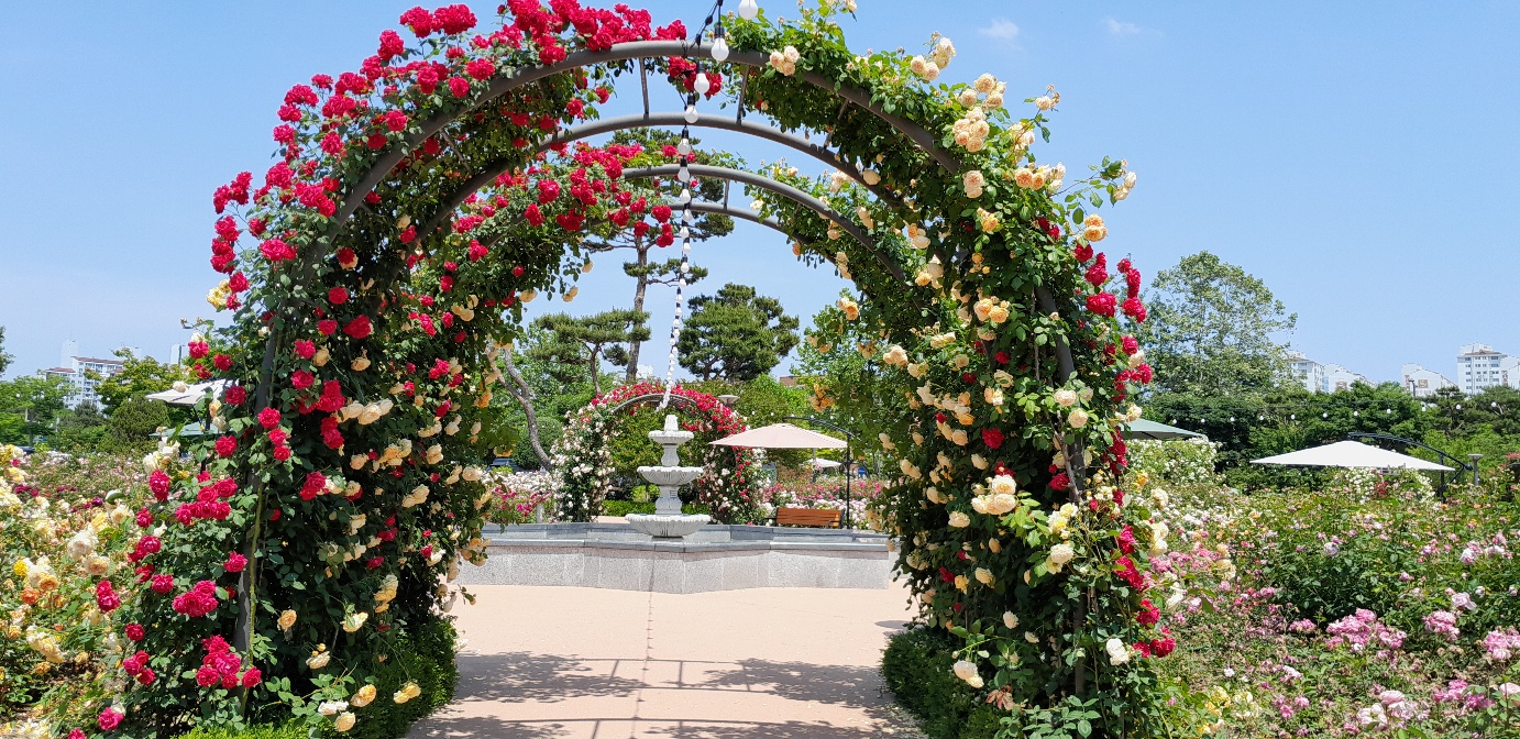 광주광역시 시청 야외주차장 옆 장미공원에 다녀왔어요. 장미꽃이 만개했네요 어떤 건 시들어가고 있어서 이번 주 안에 가면 좋을 것 같아요.
