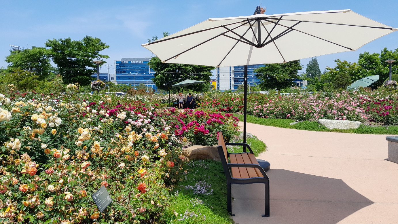 그늘이 있는 벤치가 곳곳에 있어서 장미꽃 보면서 쉴 수 있어요. 장미향은 엄청 진하진 않네요. 대신 크기가 커서 볼만해요.
