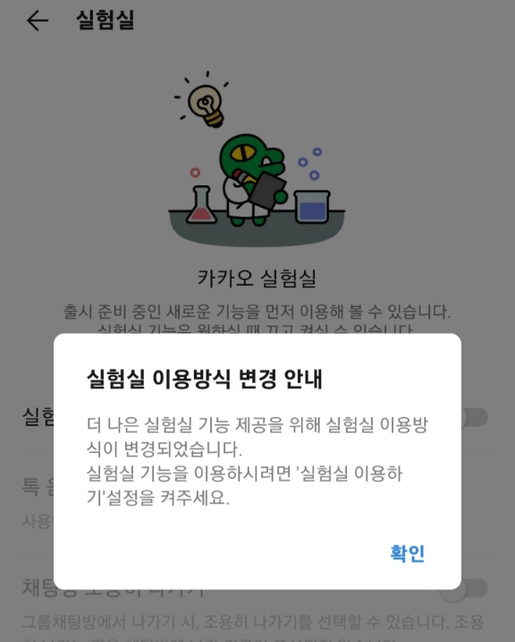 실험실 이용방식 변경 안내 팝업창이 뜨는데 오른쪽 하단에 있는 확인 눌러주세요.