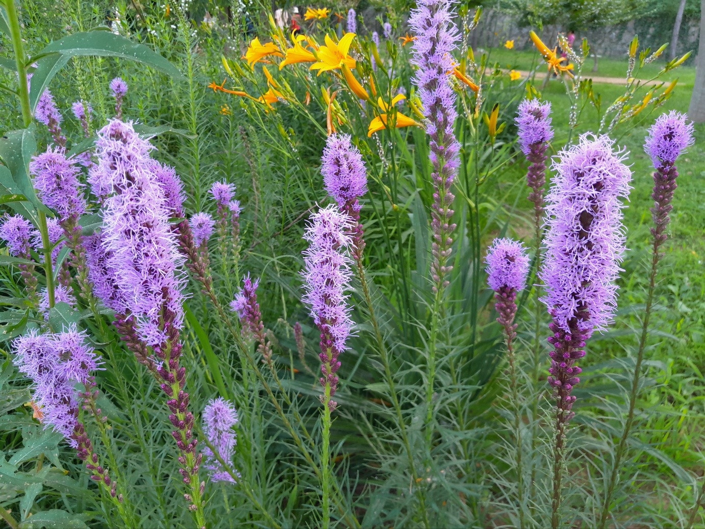 꽃이름이 리아트리스입니다. 국화과이고요. 멀리서도 보라색이 눈길을 끄네요.