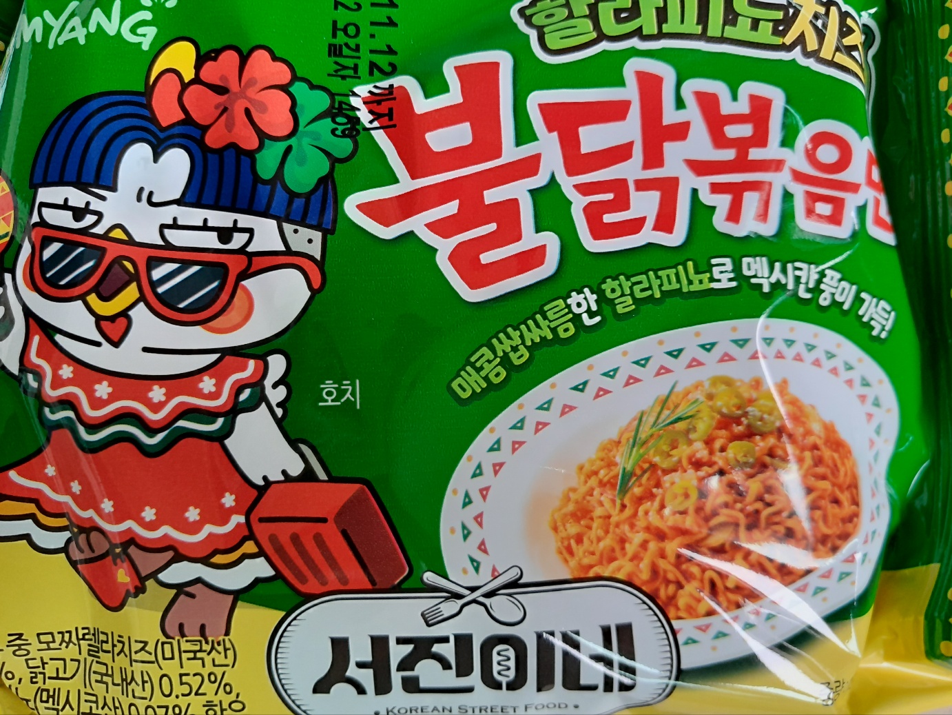 까르보불닭 맵기만큼 맵다고 해서 할라피뇨치즈 불닭볶음면을 사봤어요. 까르보불닭은 액상스프를아주 조금만 넣고 맛있게 먹고 있어요.