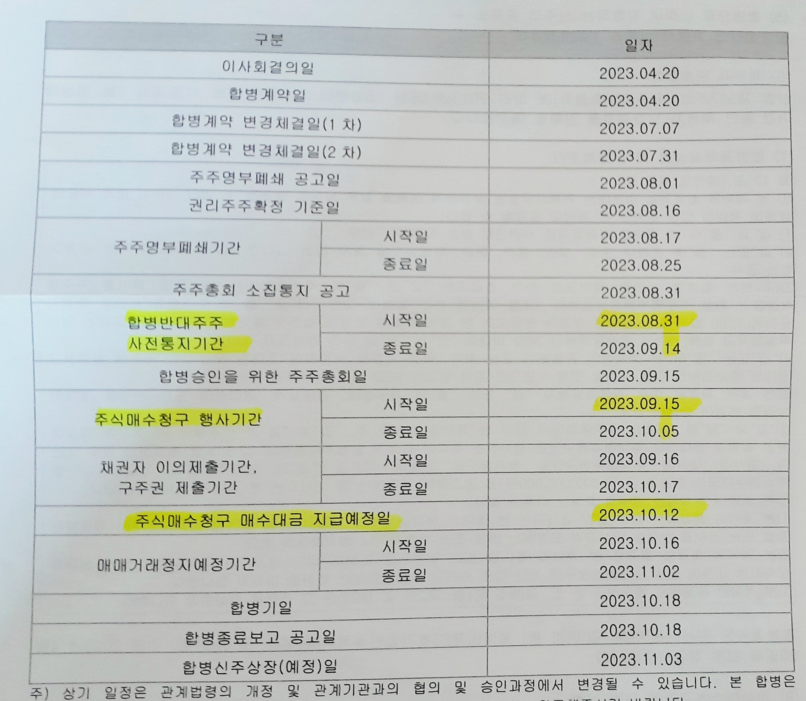반대의사신청을 9월 14일까지 하고 매수청구신청을 10월 5일까지 하면 된다는 것 같은데... 맞나???