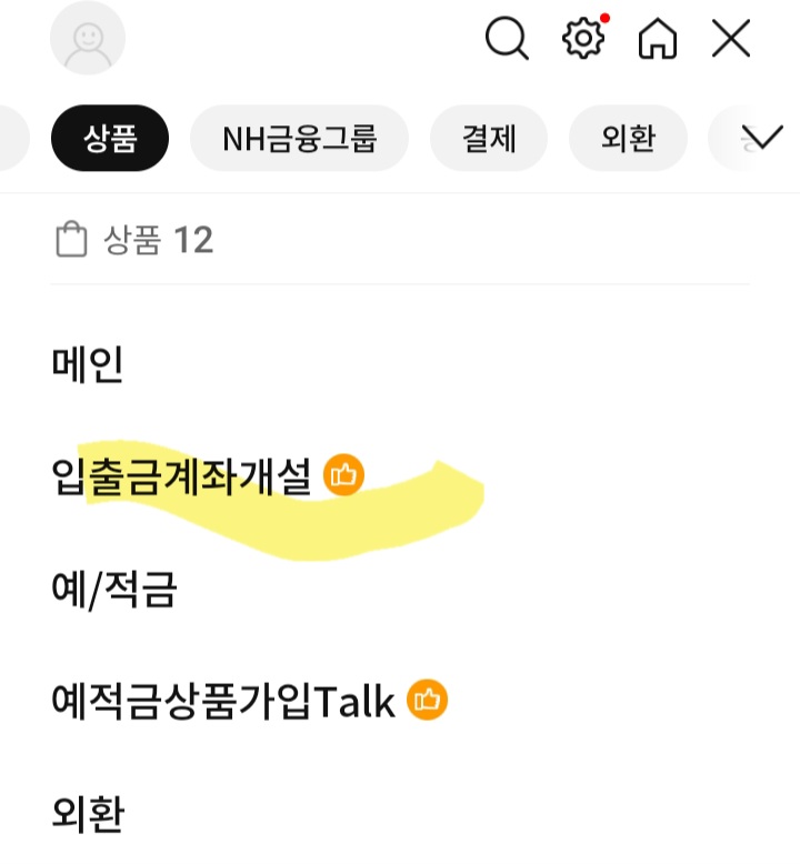 상품 - 입출금 계좌개설 클릭해서 신분증 인증 후 계좌 만들면 됩니다.