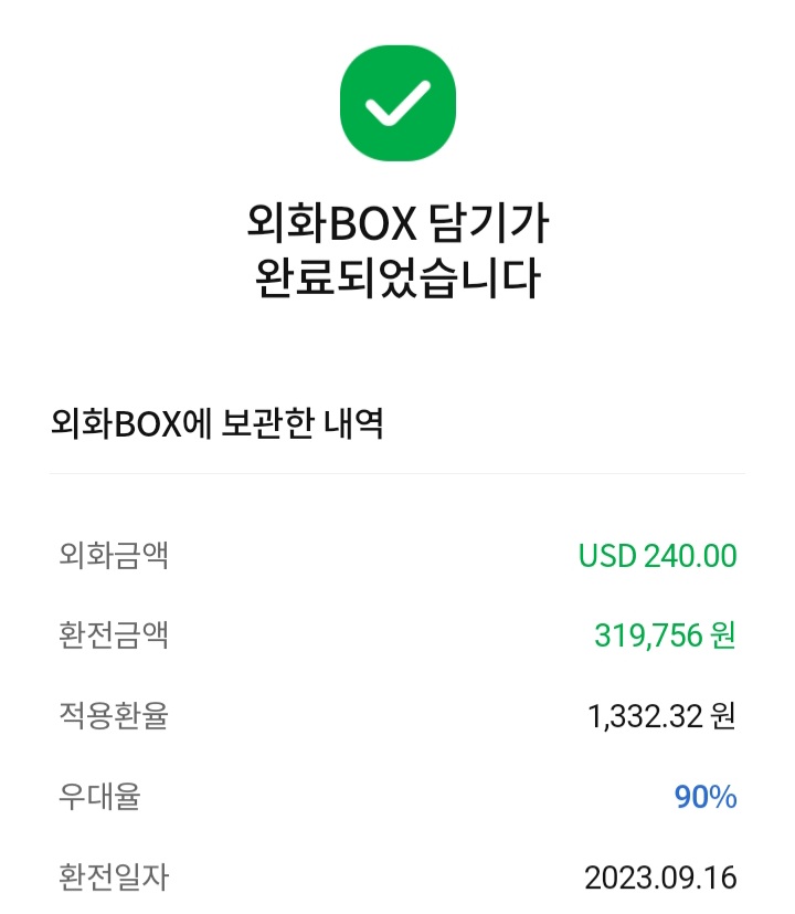 이번에 kb외화머니박스 알게 되어서 이용하려고 했더니 가까운 kb은행이 없어져버렸네요. 농협 환전 검색하다 NH올원뱅크에 내 맘대로 외화 box가 있는 걸 알게 돼서 이용해 봤어요. 달러 우대율 90%입니다. 달러가 저렴할 때 미리미리 사놓아야겠어요.