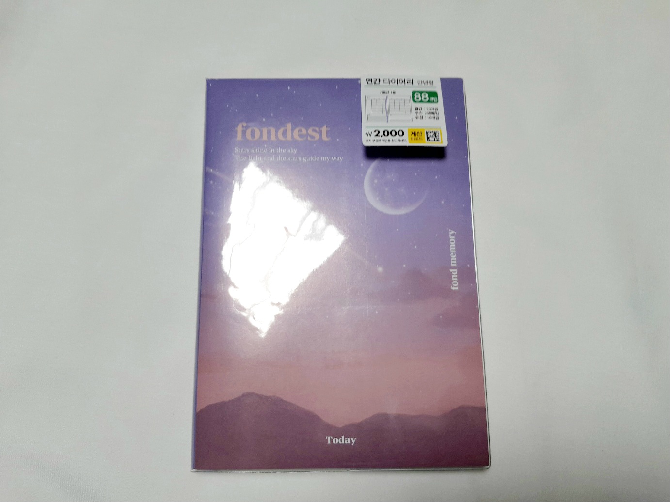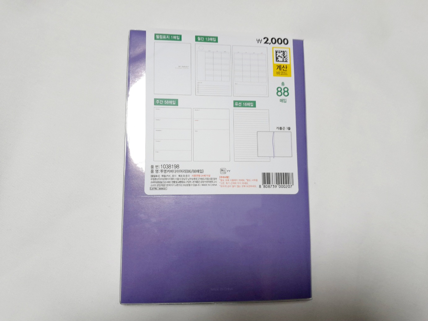 만년다이어리로 88매입 가격은 2000원입니다. 크기는 대략 13cm× 19cm입니다. 표지가 딱딱하진 않지만 많이 얇지도 않아요. 내지도 약간 도톰한 느낌이에요.
