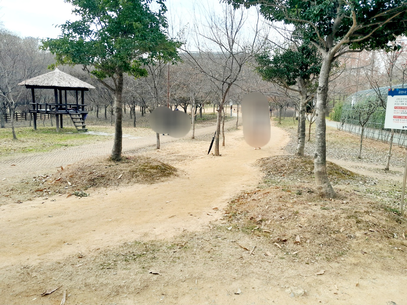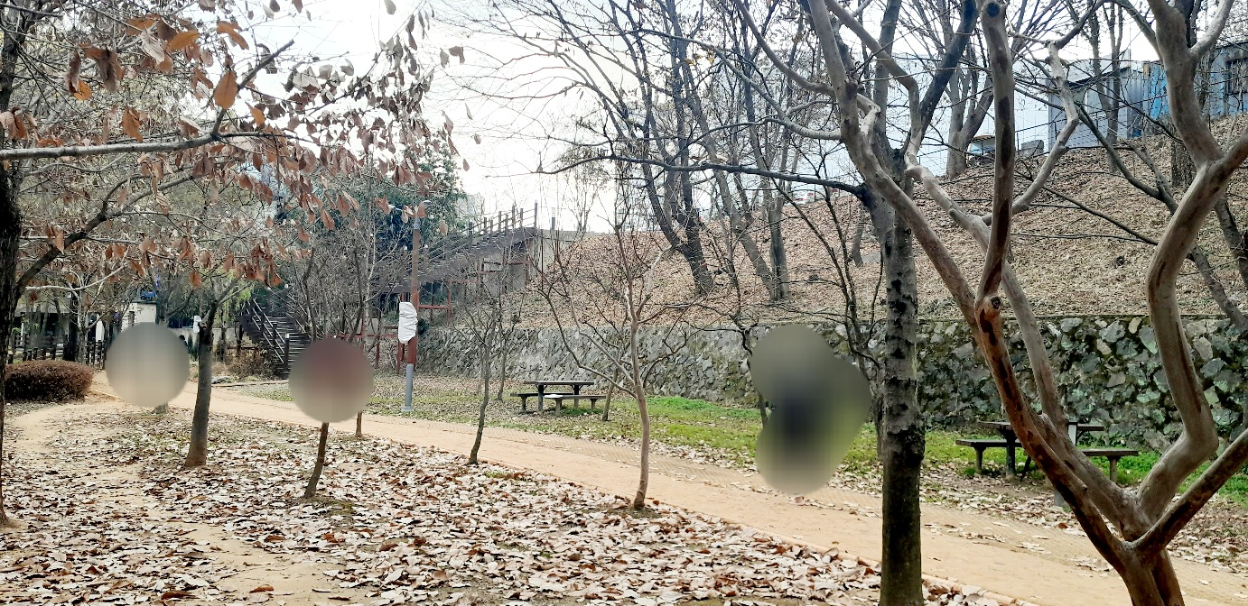 용봉동 초록습지에 맨발 걷기 하는 분이 많아지더니 맨발로 걷는 길을 마련해 놨네요. 표시한 부분이 잔디였는데 흙길로 바꿔놓고 수돗가도 설치해 놨어요.