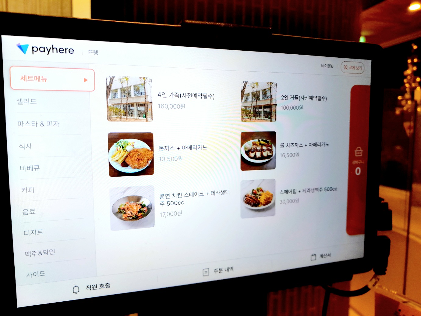 테이블에서 주문ㆍ결제까지 해야 음식이 나옵니다. 포모도로브리치즈 파스타 시켰는데 가격은 비싸지만 진짜 맛있고 양도 많았어요. 가격은 18,000원. 사진 보니 또 먹고 싶네요.