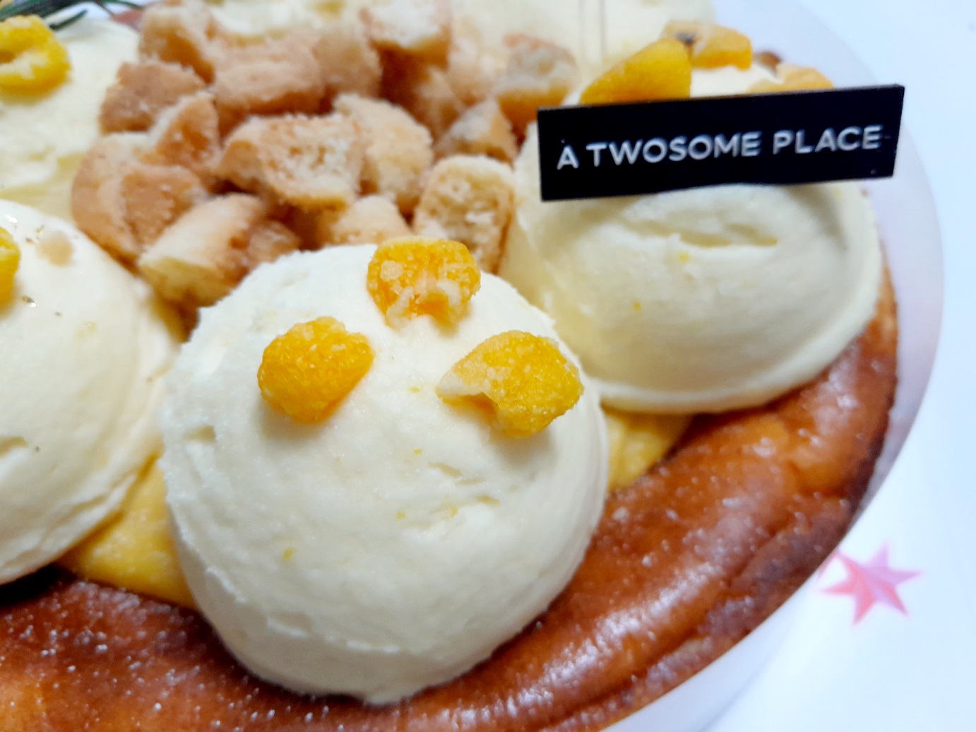 투썸플레이스 스윗투게더 케이크 쿠폰(37800원)을 받았는데 그 케이크가 없어서 추가금 내고 옥수수바스크치즈케이크를 샀어요. 맛없을까 걱정했는데 먹을만했어요. 가격은 38000원입니다.