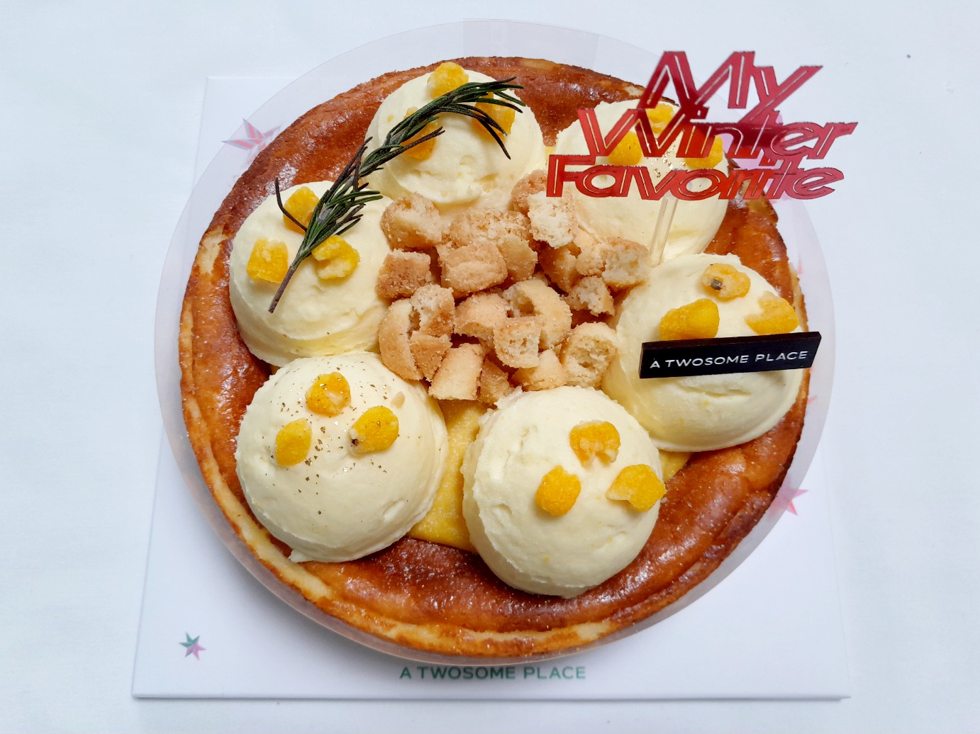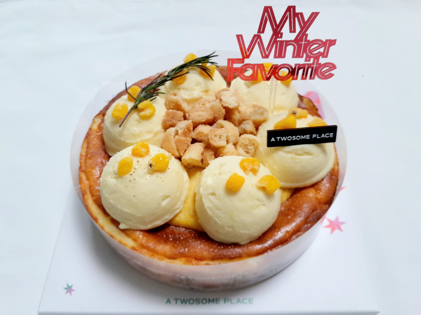 투썸플레이스 스윗투게더 케이크 쿠폰(37800원)을 받았는데 그 케이크가 없어서 추가금 내고 옥수수바스크치즈케이크를 샀어요. 맛없을까 걱정했는데 먹을만했어요. 가격은 38000원입니다.