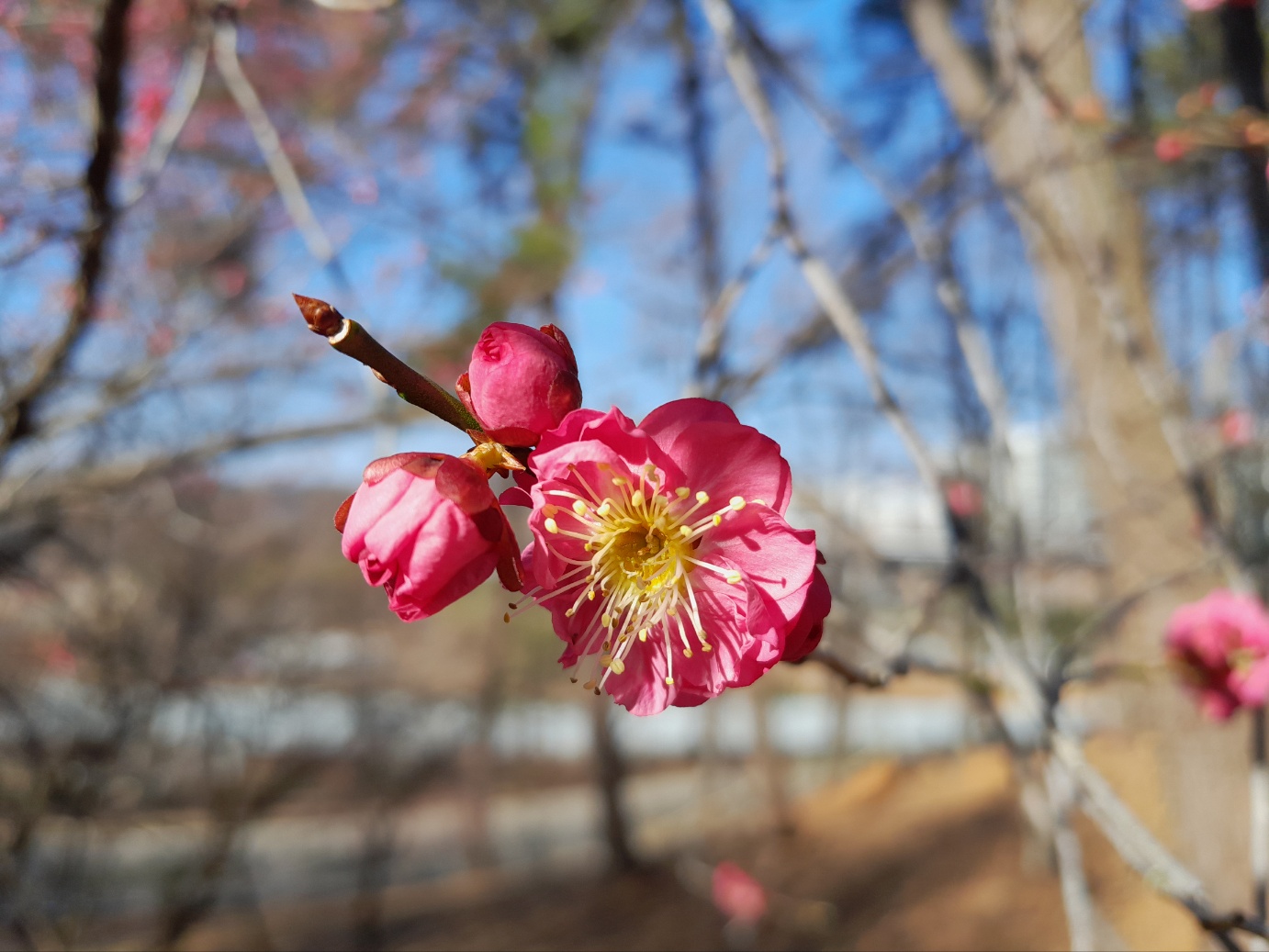 광주 시립미술관 정문 건너편에 있는 야외공연장 근처에 홍매화가 피기 시작하네요. 활짝 피려면 아직 먼 것 같아요. 광주시립미술관 옆에 아시아예술정원 공사가 진행 중입니다.