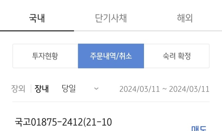 국고 01875-2412(21-10) 매도는 장내에서 가능했습니다.