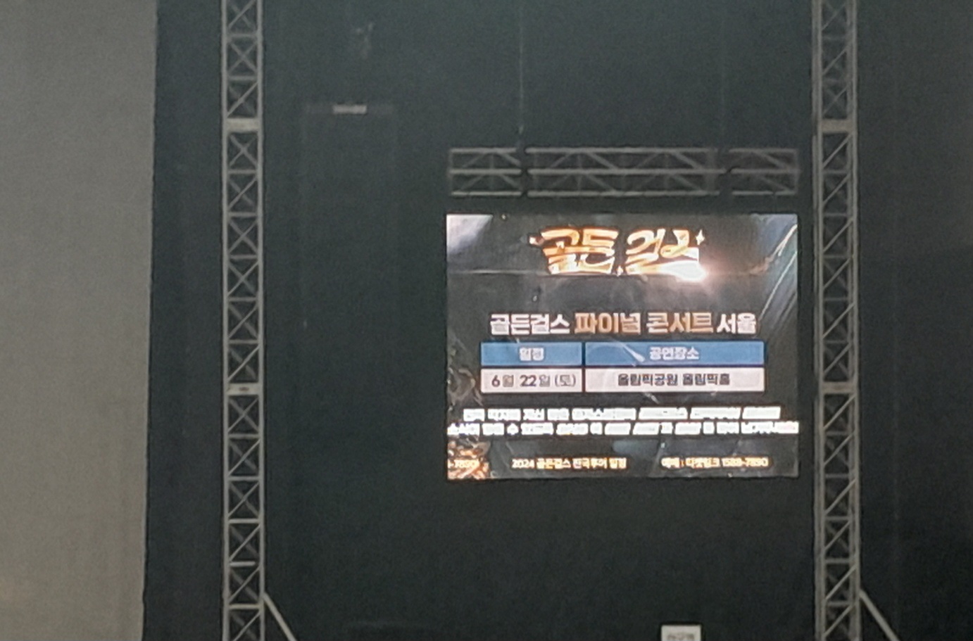 김대중컨벤션센터 정문으로 들어가서 맨 안쪽으로 가면 왼쪽에 골든걸스공연장이 있습니다. 현수막이 없어서 바로 찾기 어려웠어요.