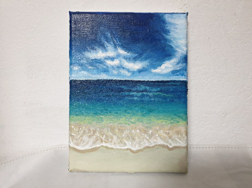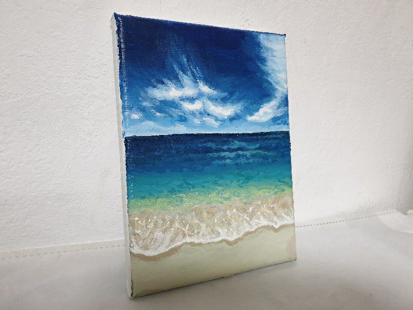 18x13cm 작은 캔버스에 그리려니 갖고있던 붓들은 너무커서 그리기 어려웠습니다. 특히 하얀 파도 거품을 못살린것같아요. 작가님은 허투루하는 붓질없이 어쩜 저리 잘그리실까요. 색 만드는것도 가르쳐주셨지만 그대로 따라하는건 어려웠습니다ㅋ 모래사장 그림자 따라하다간 망칠것같아 안그렸어요. 그래도 얼추 완성해서 뿌듯합니다. 작가님 구름은 보고 있으면 내가다 가벼워 지는 느낌.캔버스가 작으니 덜 힘들고 연습하기 좋네요. 인터넷에서 작은 캔버스 많이 사다놨는데 천천히 그려가려고합니다.