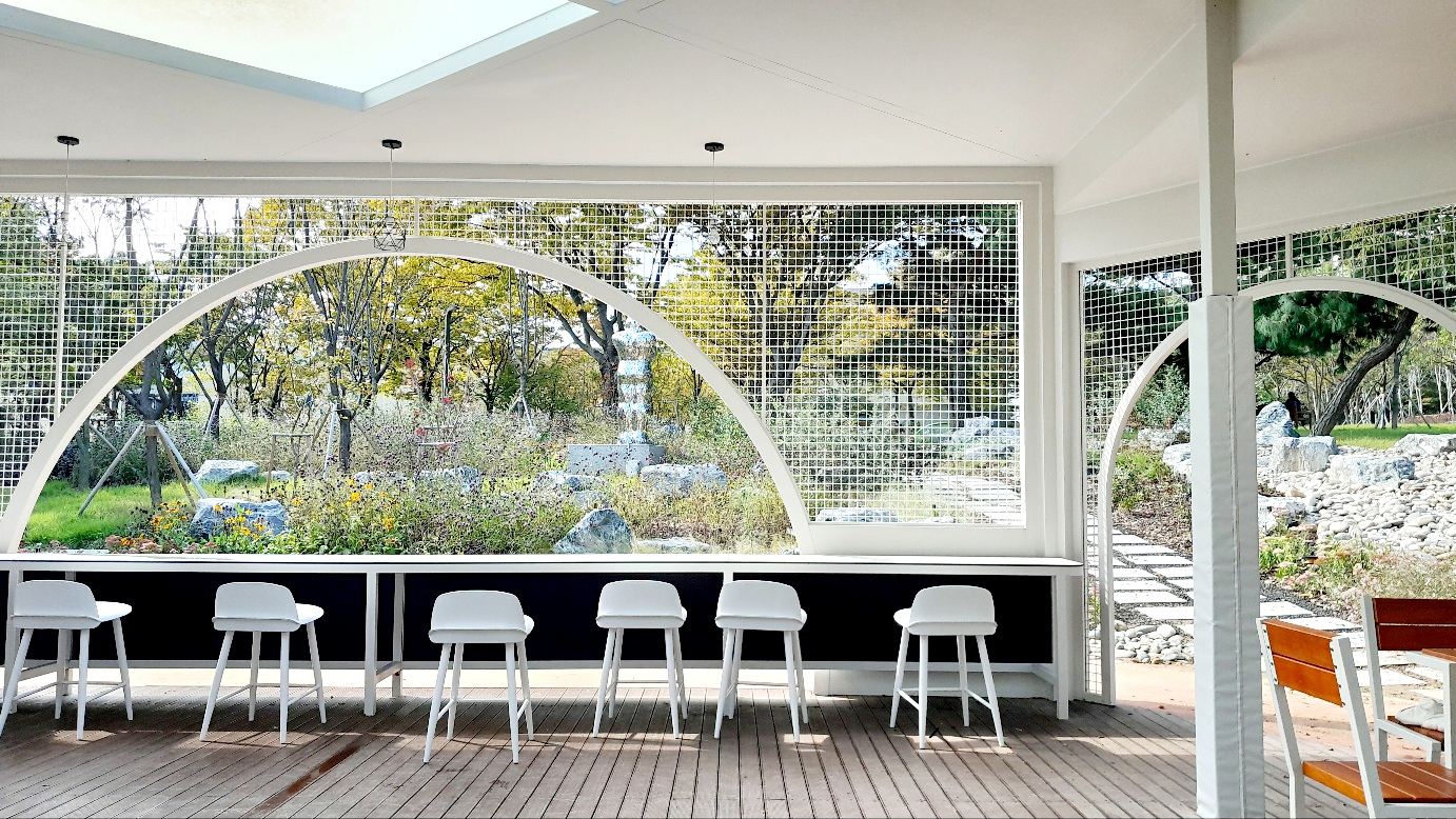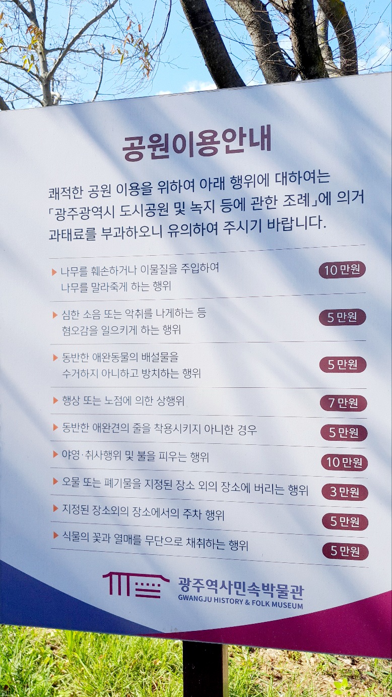 광주 역사민속박물관 근처 연못 쪽에 평상이 3개 있어요.