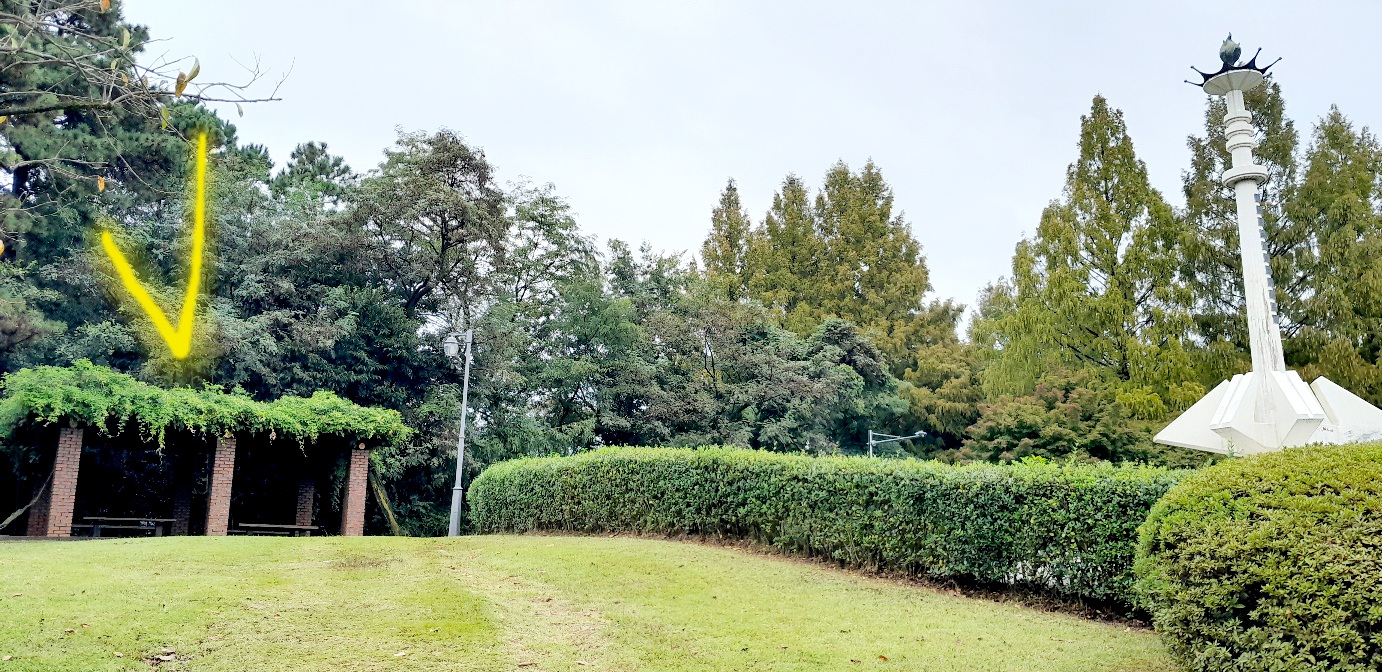 등나무가 거의 다 없어지고 시립미술관 뒤편 좌측에 하나 있네요. 노란색으로 표시한 부분입니다.
