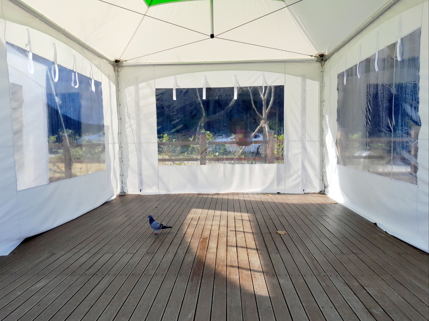 겨울이 다가와서 그런지 어린이 놀이터에 천막이 생겼네요. 바람을 막아주니 덜 추울듯해요.
