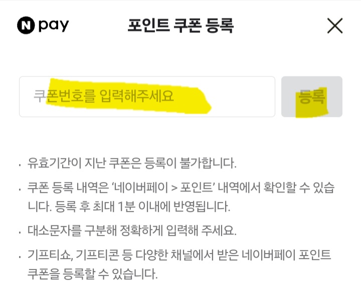 바코드 밑에 있는 9자리 숫자 입력했더니 쿠폰등록됐네요.
