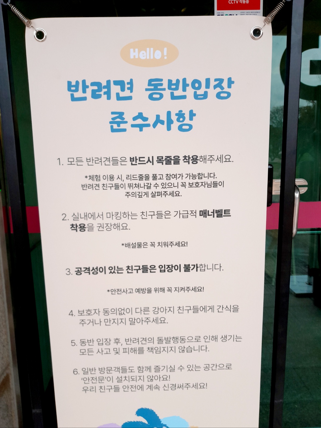 안에는 들어가지는 않았어요. 다른 분들은 반려견 데리고 많이 들어가시더라고요. 참여자 이용 콘텐츠에 다음과 같이 쓰여있네요.