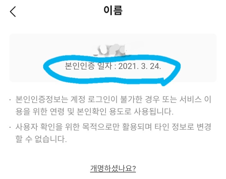 저는 이미 본인인증 해서 본인인증 날짜가 나오네요.