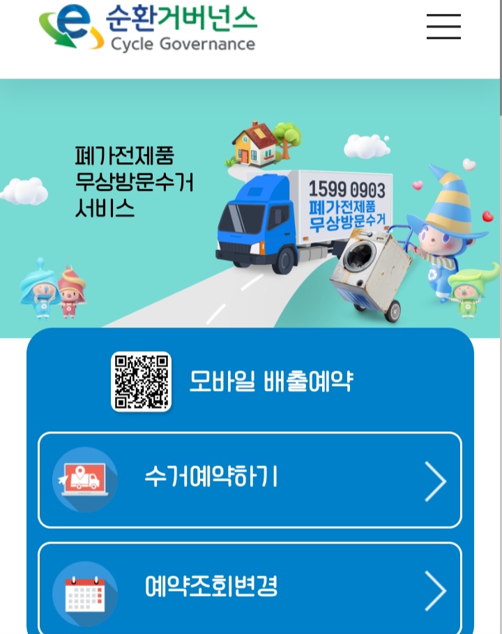 e순환거버넌스에 폐가전 무상수거 후기입니다. 12월 17일에 신청했는데 예약가능한 날짜가 12월 말이었어요.