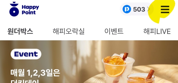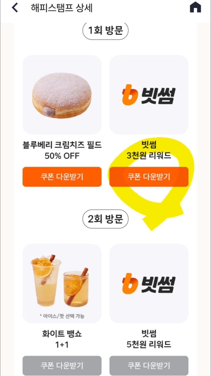 3일 동안 이벤트가 있어요. 3천 원 이상 구매하고 + 해피포인트 어플로 포인트 적립하면 빗썸 쿠폰을 줍니다. 자세한 사항은 해피포인트 어플에서 확인하세요.