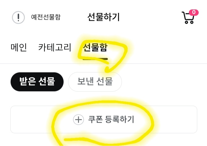 2. 선물함 - 쿠폰등록하기 클릭
