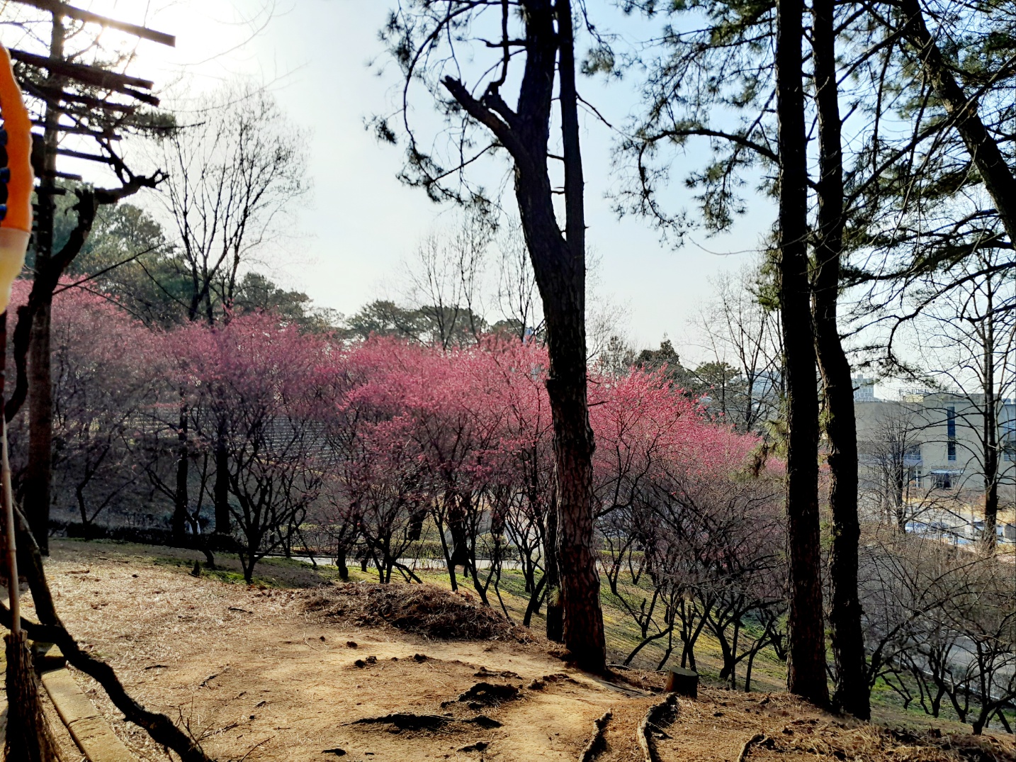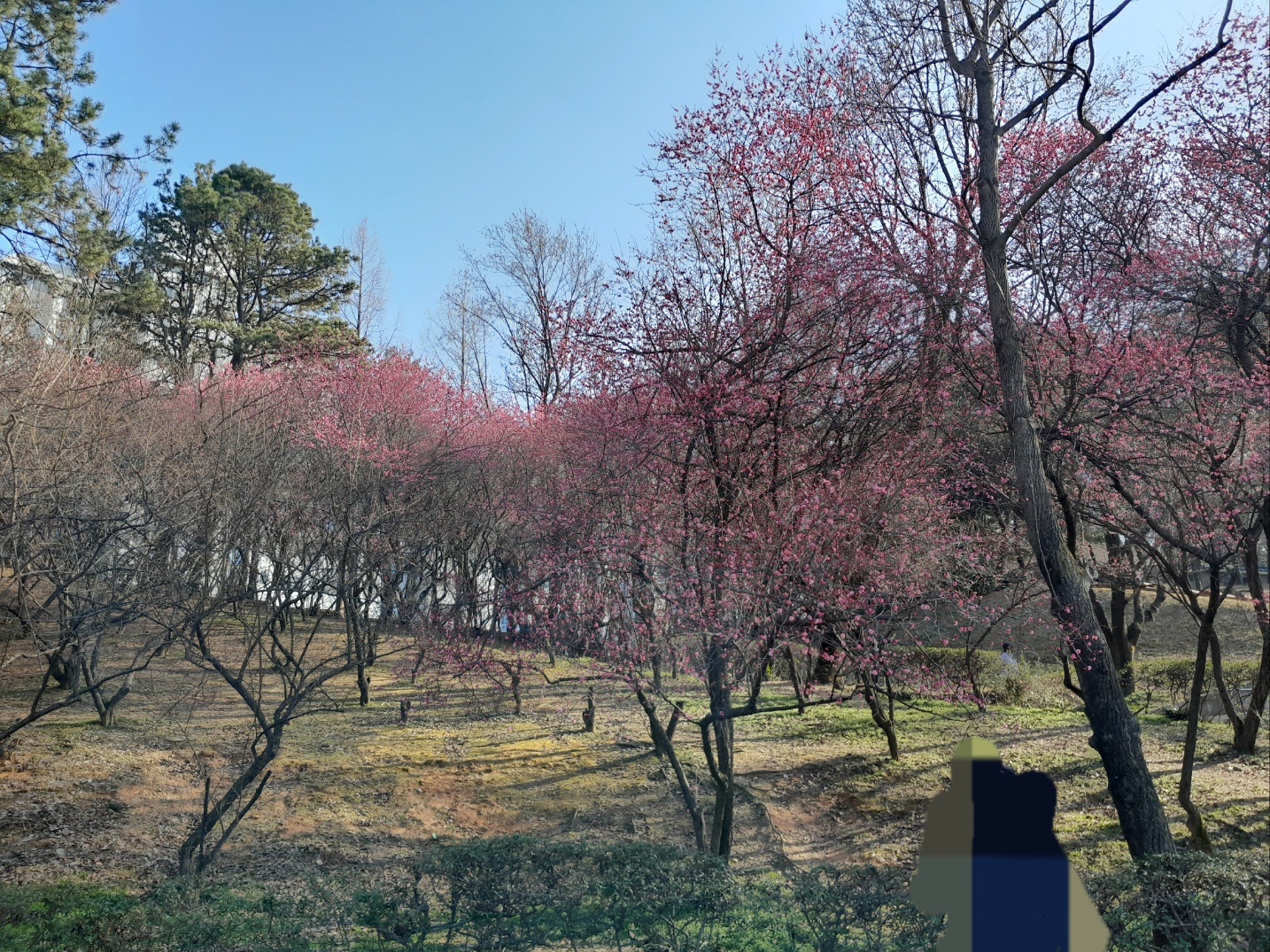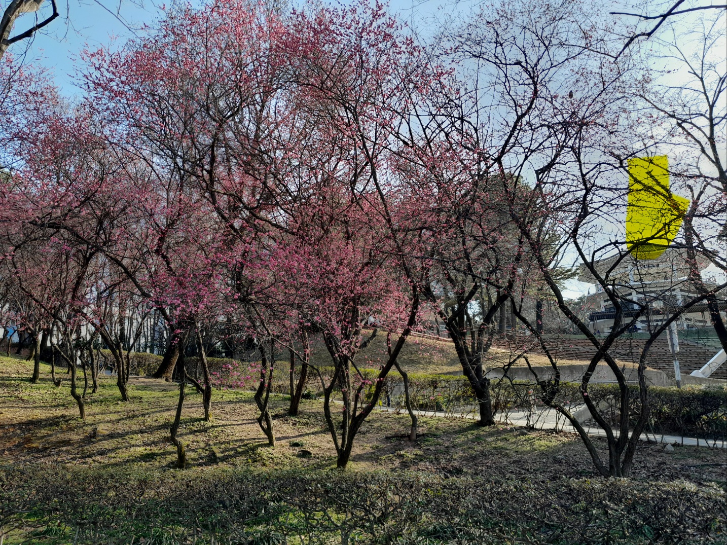 중외공원 홍매화가 60% 정도 핀 느낌이에요.