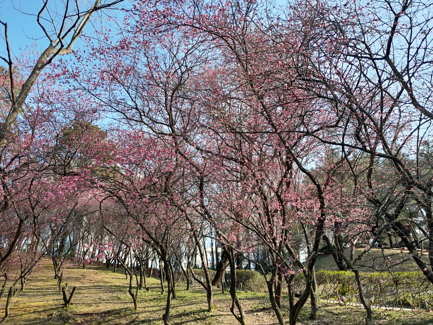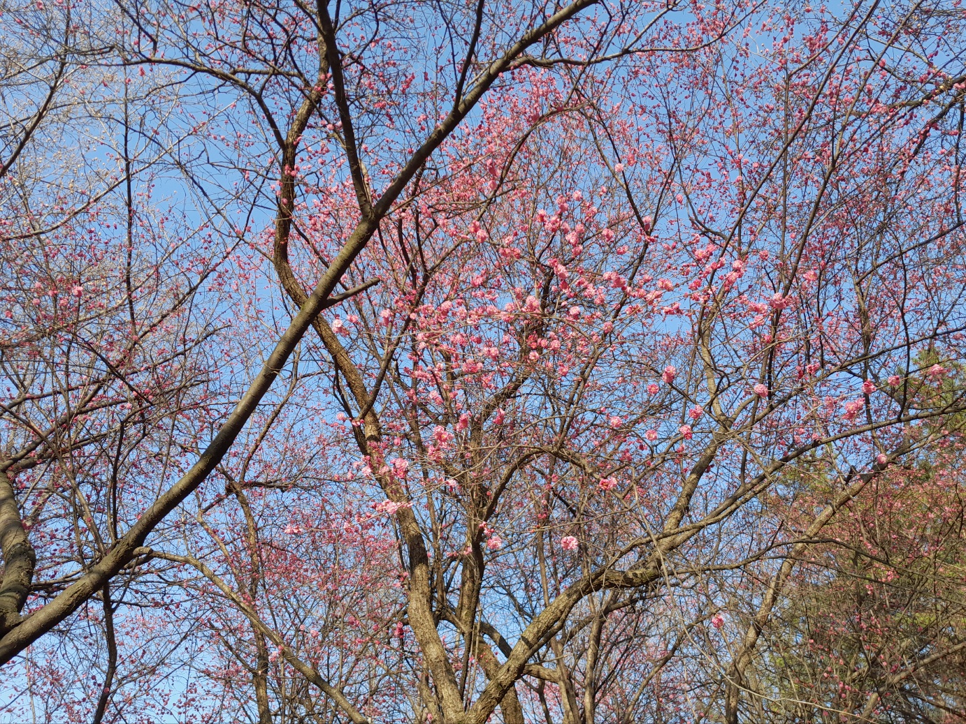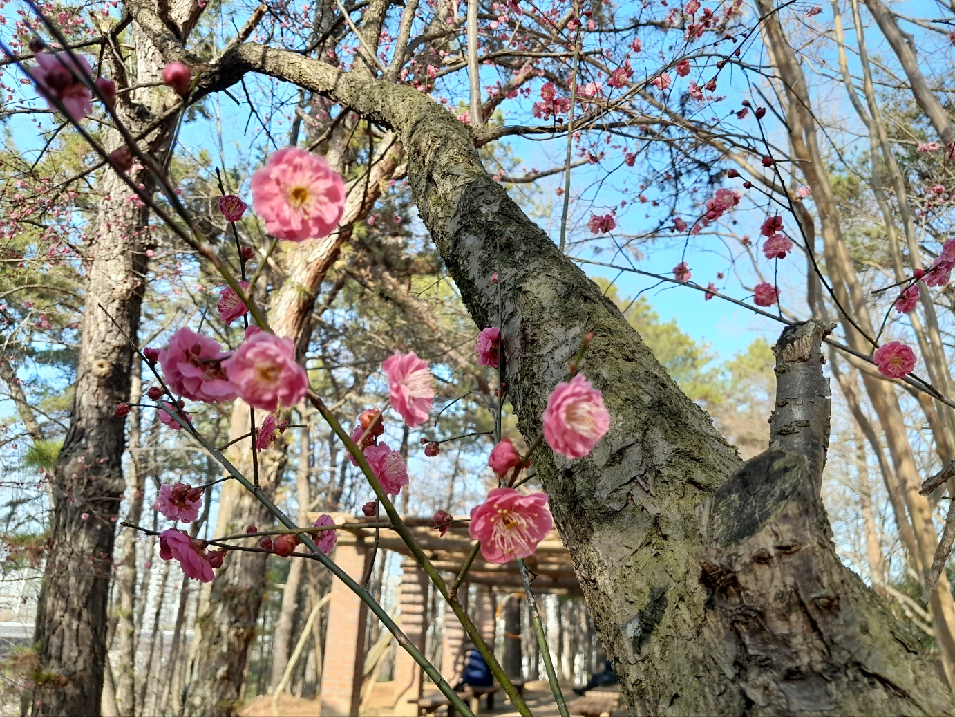 중외공원 홍매화가 60% 정도 핀 느낌이에요.