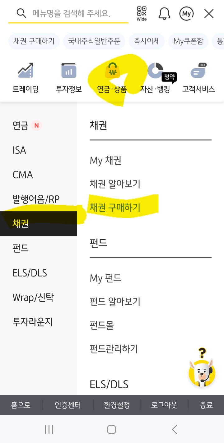 1. 연금ㆍ상품 - 채권 - 채권구매하기