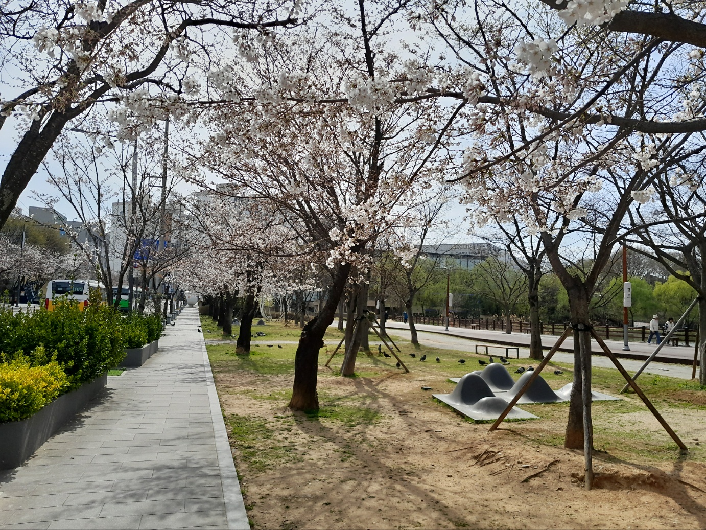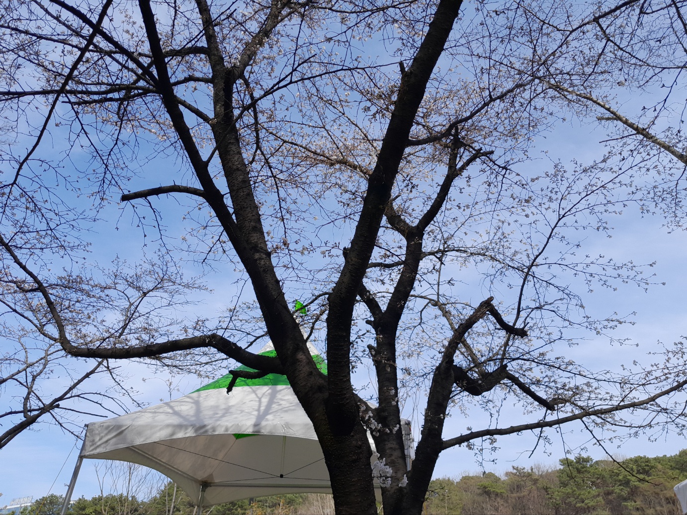 여기부터는 중외공원 어린이 놀이터 옆에 있는 벚꽃 사진입니다. 거의 안 피었어요.
