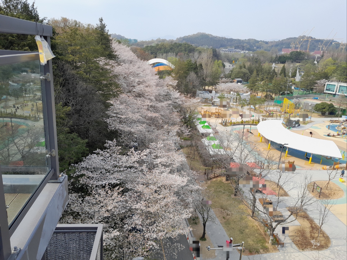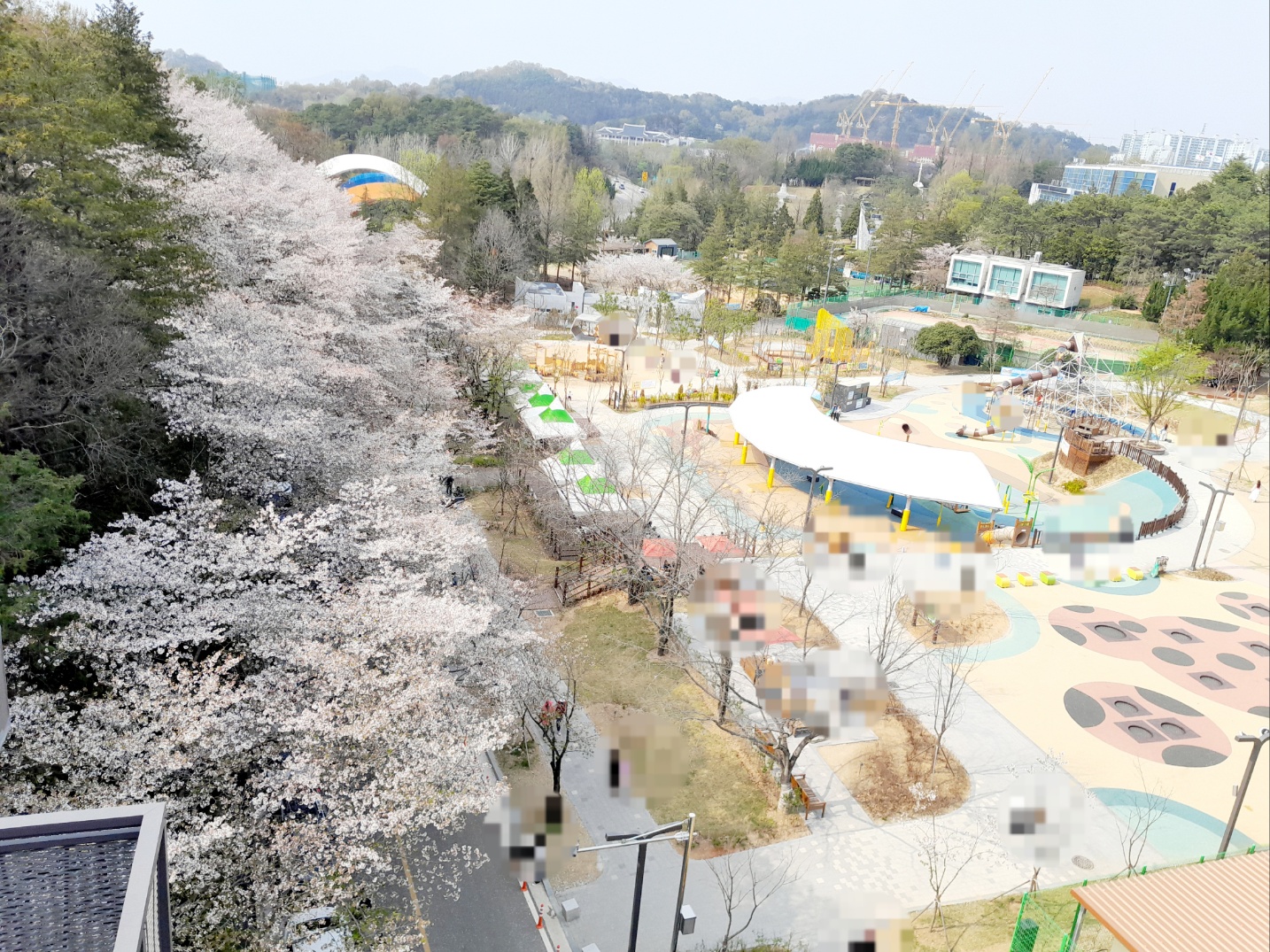 중외공원 어린이 놀이터 옆에 핀 벚꽃이에요. 어린이놀이터 위치는 중외공원 테니스장 옆에 있어요.