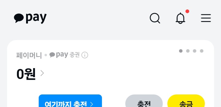 카카오페이 어플 상단에 검색창(돋보기모양)을 클릭해 주세요