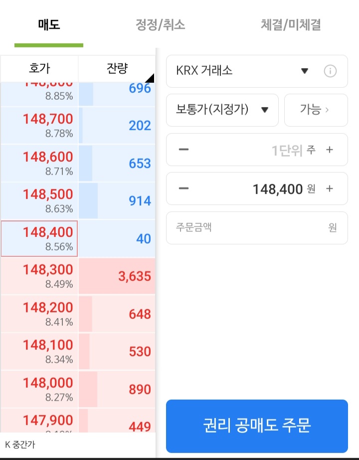 주식> 국내주식 > 기타주문 권리공매도 클릭